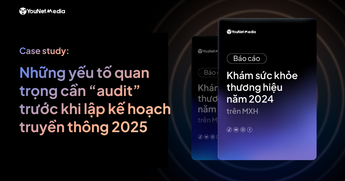 Báo cáo Brand Audit từ YouNet Media là một “gói khám tổng quát” về sức khỏe thương hiệu trên MXH, sử dụng dữ liệu lớn từ social listening, cung cấp cái nhìn toàn diện về ngành hàng, thương hiệu, đối thủ và người dùng. Dữ liệu rõ ràng, trung lập này sẽ giúp Marketers tự tin duyệt kế hoạch cho năm 2025.