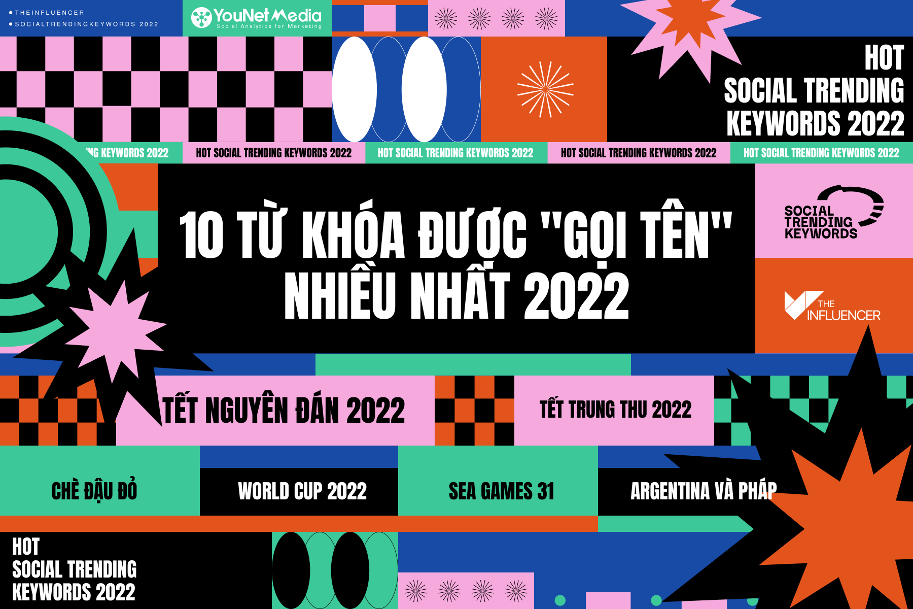 Năm 2022, The Influencer cùng với Younet Media – Đối tác đo lường và phân tích dữ liệu mạng xã hội của chúng tôi đã mang đến cho độc giả những cập nhật về mọi xu hướng nóng hổi và được thảo luận nhiều nhất trên mạng xã hội qua danh sách tổng hợp #SocialTrendingKeywords hàng tuần. Để tổng kết lại một năm 2022 nhiều điểm nhấn và “thăng trầm” trên mạng xã hội, The Influencer cùng Younet Media đã cho ra mắt Hot Social Trending Keywords 2022 – Danh sách “vinh danh” những từ khóa được thảo luận nhiều nhất năm 2022 theo 05 chủ đề: Tin tức, điện ảnh, social slang, thể thao và âm nhạc.