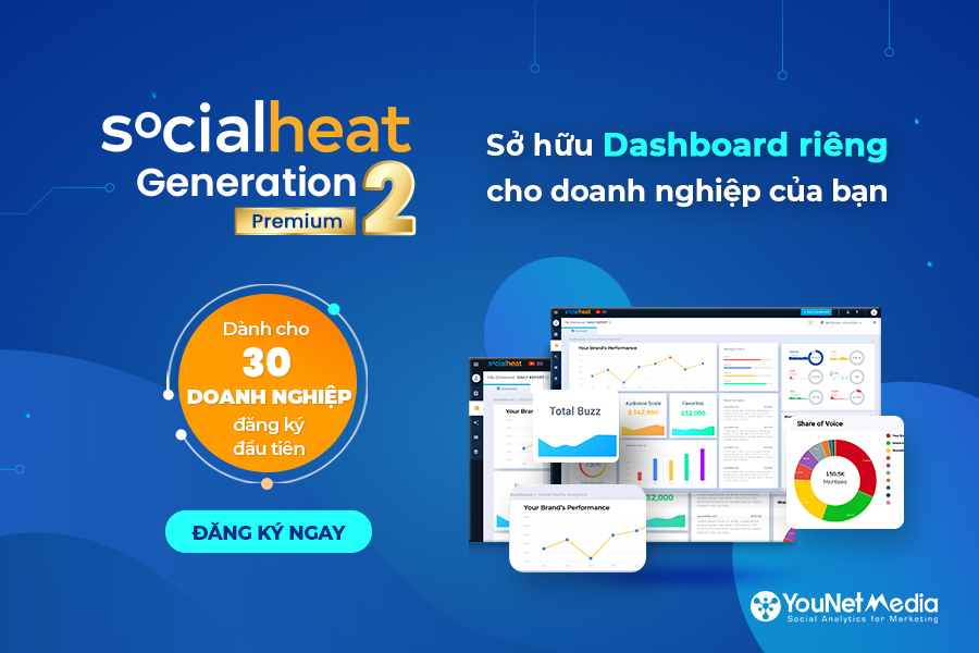 Từ ngày 18/10/2021 đến 05/11/2021, YouNet Media mang đến chương trình “SocialHeat G2 Premium: Sở hữu Dashboard riêng cho doanh nghiệp của bạn”. Chương trình giới hạn dành cho 30 khách hàng doanh nghiệp đăng ký đầu tiên.