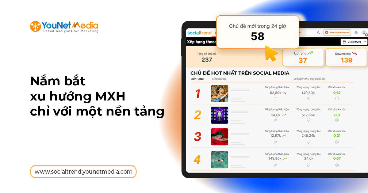 “Nhạy trend” hơn, bớt “cảm tính” trước những quyết định “bắt” những chủ đề thịnh hành trên MXH, YouNet Media chính thức ra mắt SocialTrend – Nền tảng đầu tiên tại Việt Nam đo lường xu hướng thảo luận trên MXH.