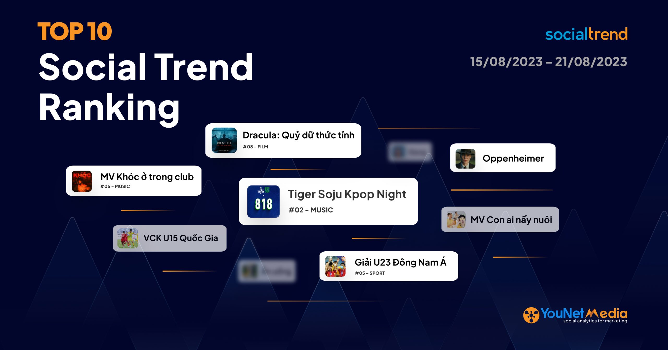 Tổng quan Bảng Xếp hạng Top 10 SocialTrend Ranking tuần 15/08 – 21/08/2023.
