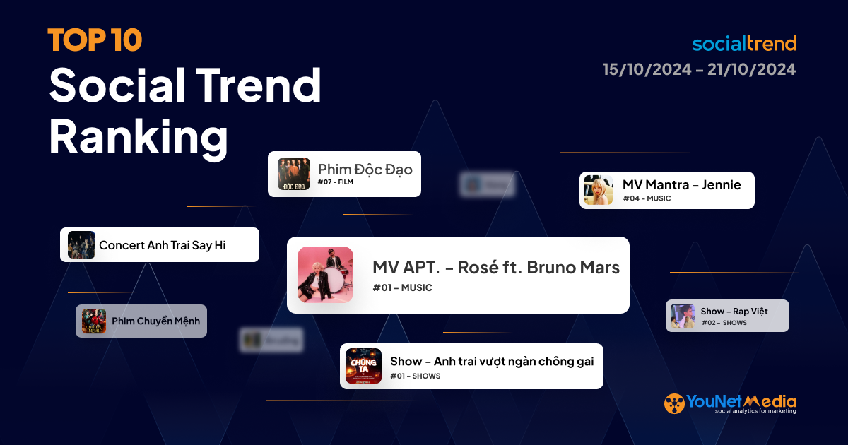 Tổng quan Bảng Xếp hạng Top 10 SocialTrend Ranking tuần 15/10 – 21/10/2024.