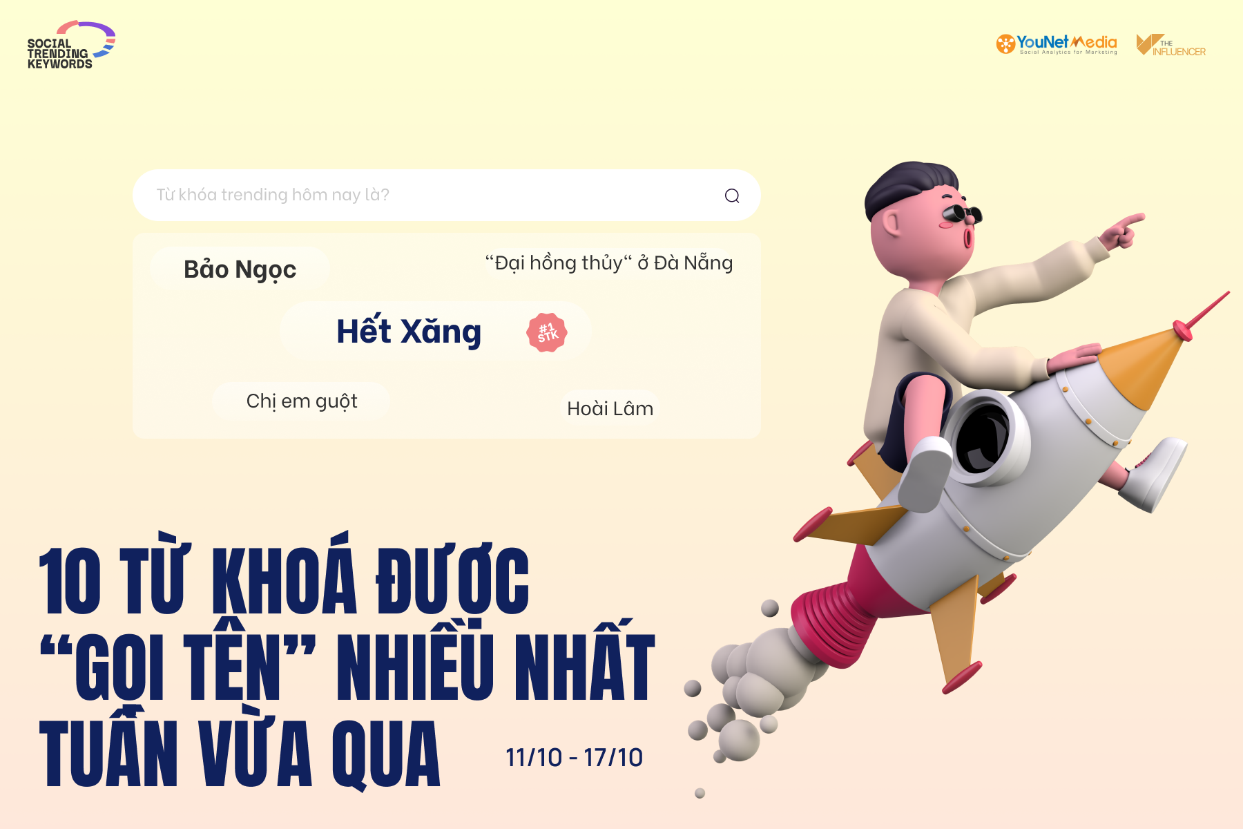 Từ tháng 11/2021, The Influencer Vietnam hợp tác cùng YouNet Media, đơn vị tiên phong và dẫn đầu trong lĩnh vực phân tích dữ liệu mạng xã hội (social analytics) tại Việt Nam, để công bố danh sách từ khóa thịnh hành trên mạng xã hội, mang tên Social Trending Keywords.Danh sách sẽ được cập nhật chính thức trên website của The Influencer vào 9h sáng mỗi thứ 3 hàng tuần, cùng với các bài phân tích chuyên sâu về các từ khóa nổi bật nhất.