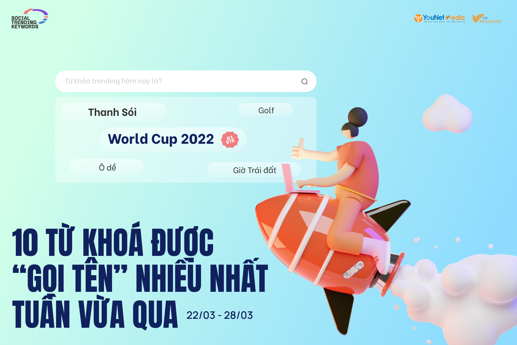 Với nhiều thay đổi bất ngờ so với tuần trước, vị trí đầu bảng trong danh sách từ khóa thịnh hành tuần này thuộc về World Cup 2022, dưới sự ảnh hưởng của trận đấu Việt Nam gặp Oman vào tối ngày 24/3. Tuy nhận về kết quả thua 0 – 1, đội tuyển Việt Nam vẫn nhận được những lời cổ vũ và động viên đến từ người dân cả nước do nhiều cái tên trụ cột đã không thể tham gia do chấn thương và nhiễm COVID-19. Qua mùa giải năm nay, cổ động viên Việt Nam có quyền hy vọng về những chiến thắng xa hơn của các chiến binh áo đỏ với những triển vọng và tiềm năng mà các cầu thủ đã thể hiện trên sân cỏ. Đây cũng là cơ hội sáng giá dành cho các thương hiệu khi việc hợp tác với cầu thủ bóng đá đang trở thành xu hướng được khán giả quan tâm.