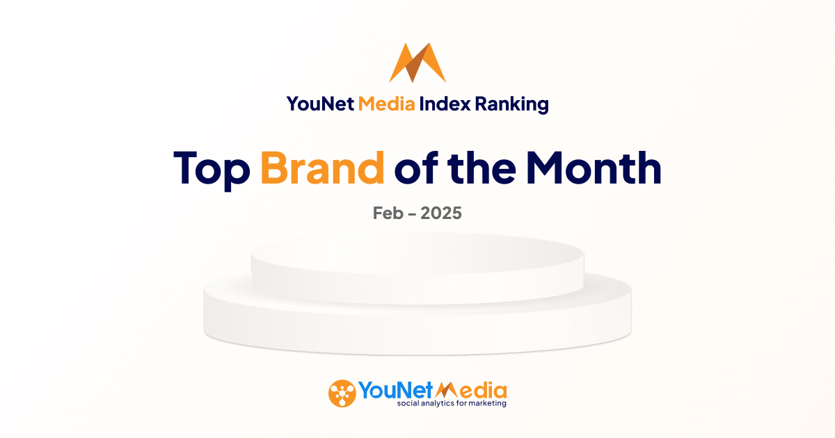Cùng YouNet Media phân tích các hoạt động sôi động của các thương hiệu qua góc nhìn lắng nghe mạng xã hội (social listening) trong Bảng xếp hạng Thương hiệu YMI Tháng 2.2025.